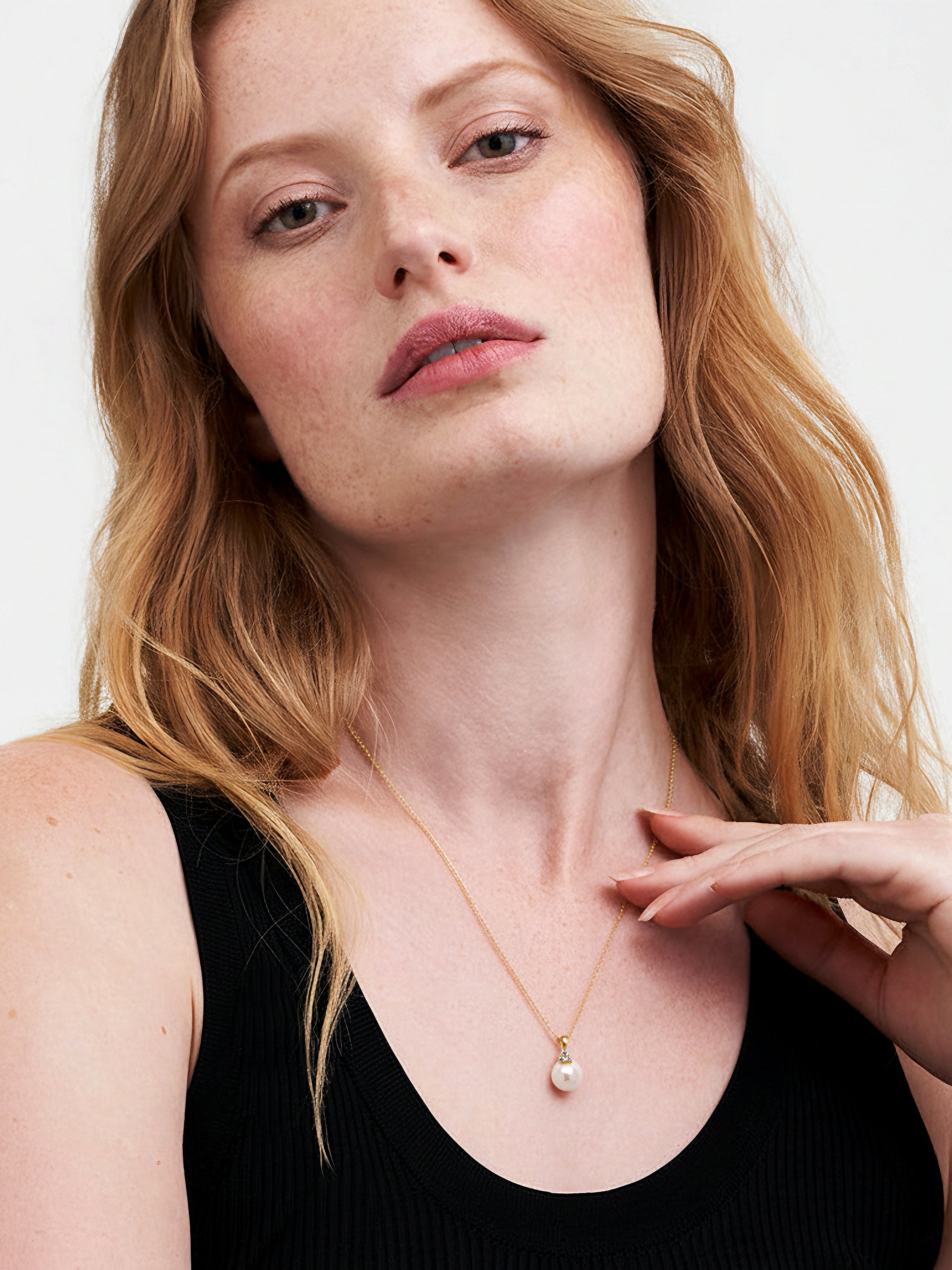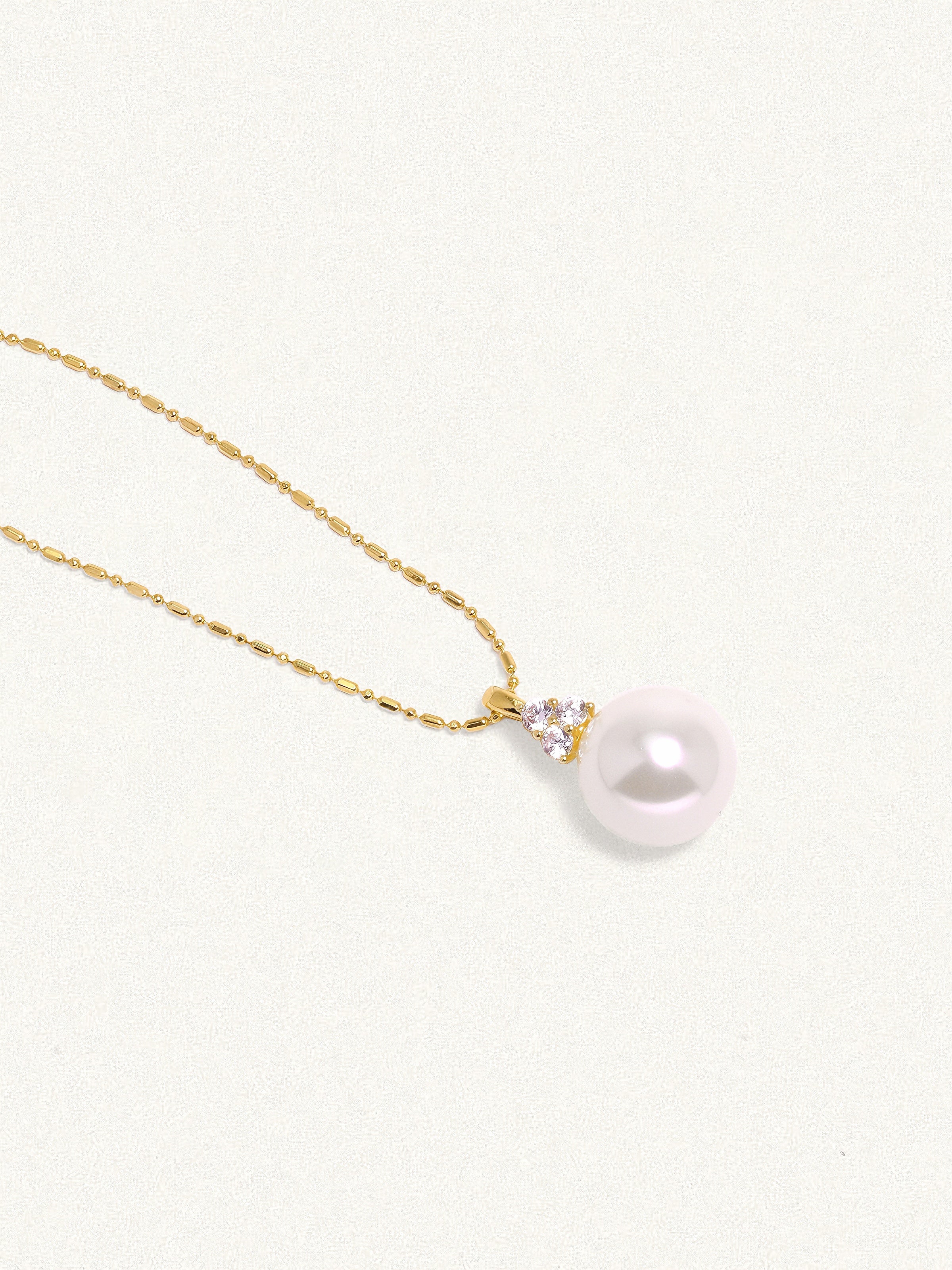 A single drop of calm—one luminous pearl crowned with a spark of light—resting where your pulse whispers. Wear it when you need simple beauty to steady a busy day and soften every look.