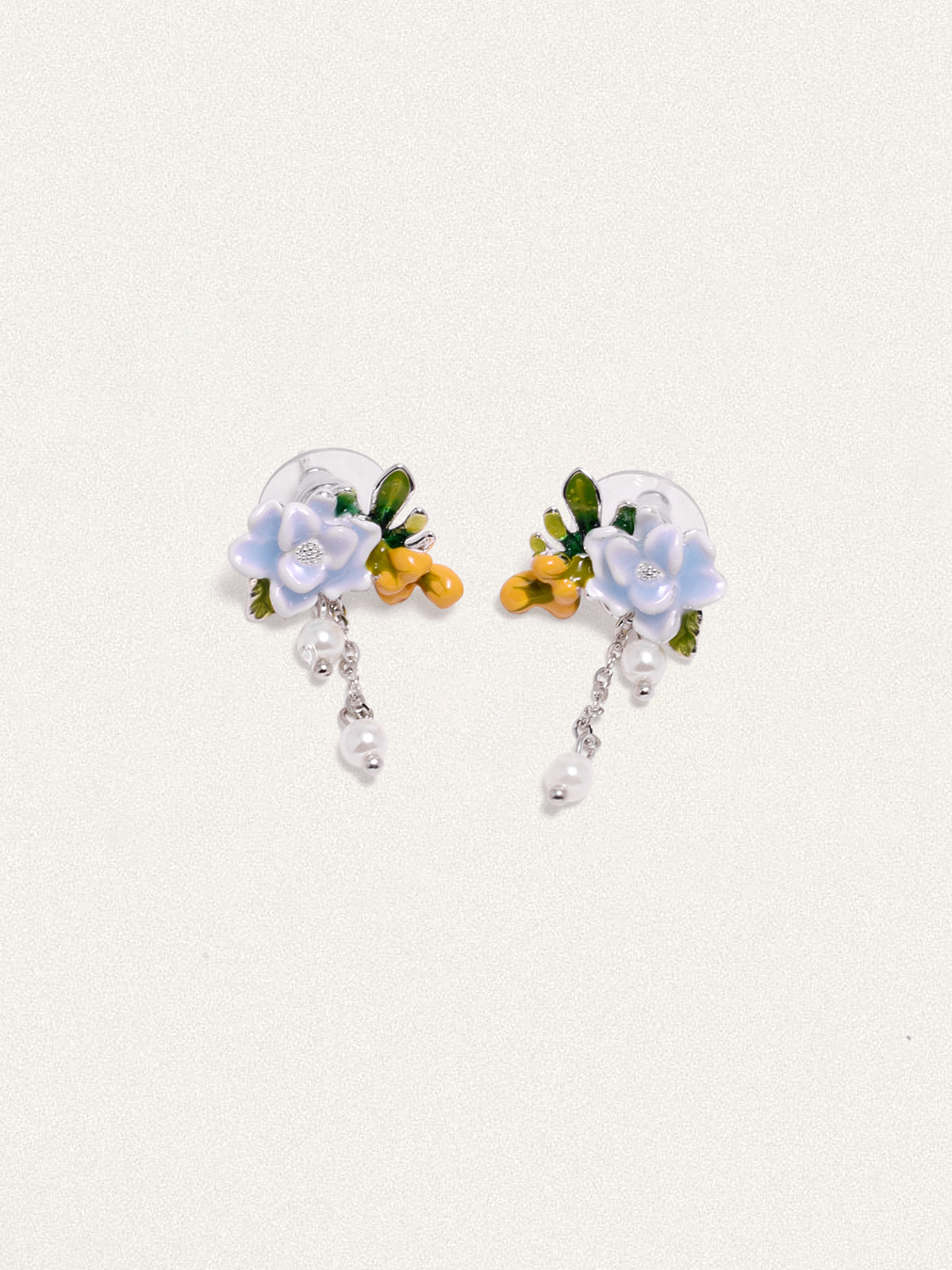 Crafted with hand-painted enamel, silver-tone settings, and petite pearl drops, it keeps calm beauty in motion.