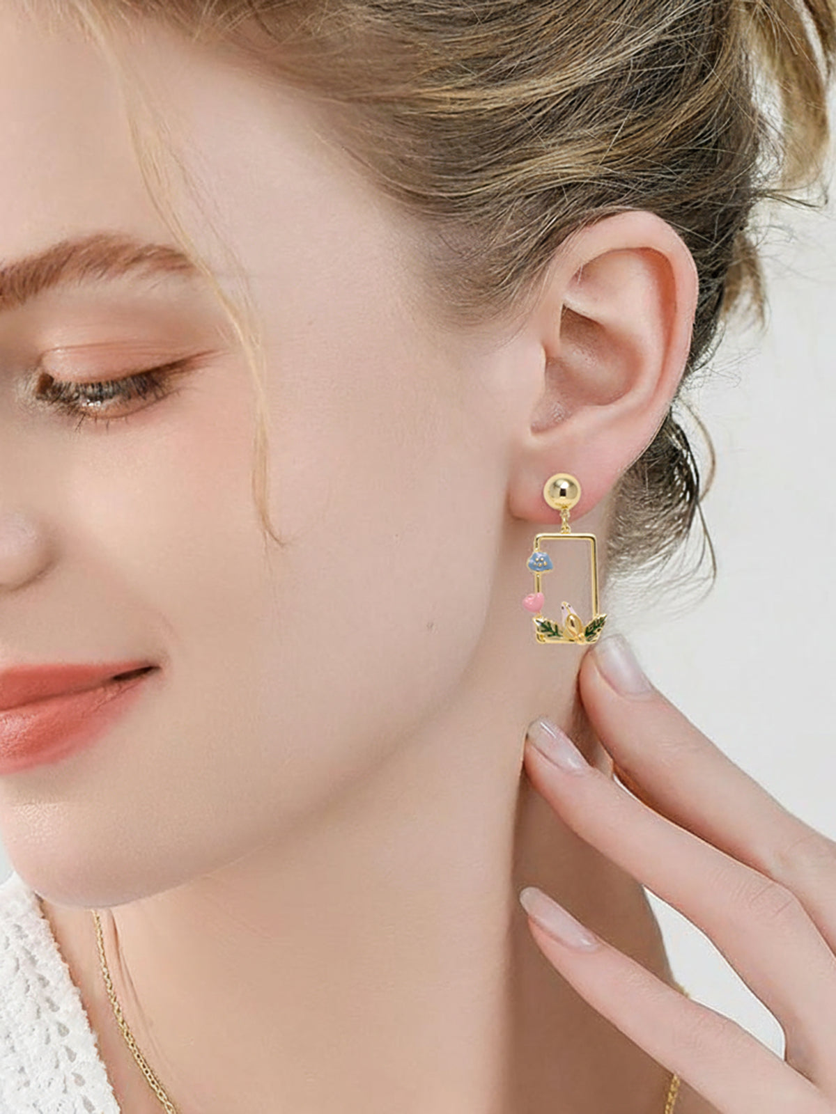Crafted with hand-painted enamel, lustrous gold-tone brass, and delicate dangling charms, inviting light, motion, and gentle joy.
