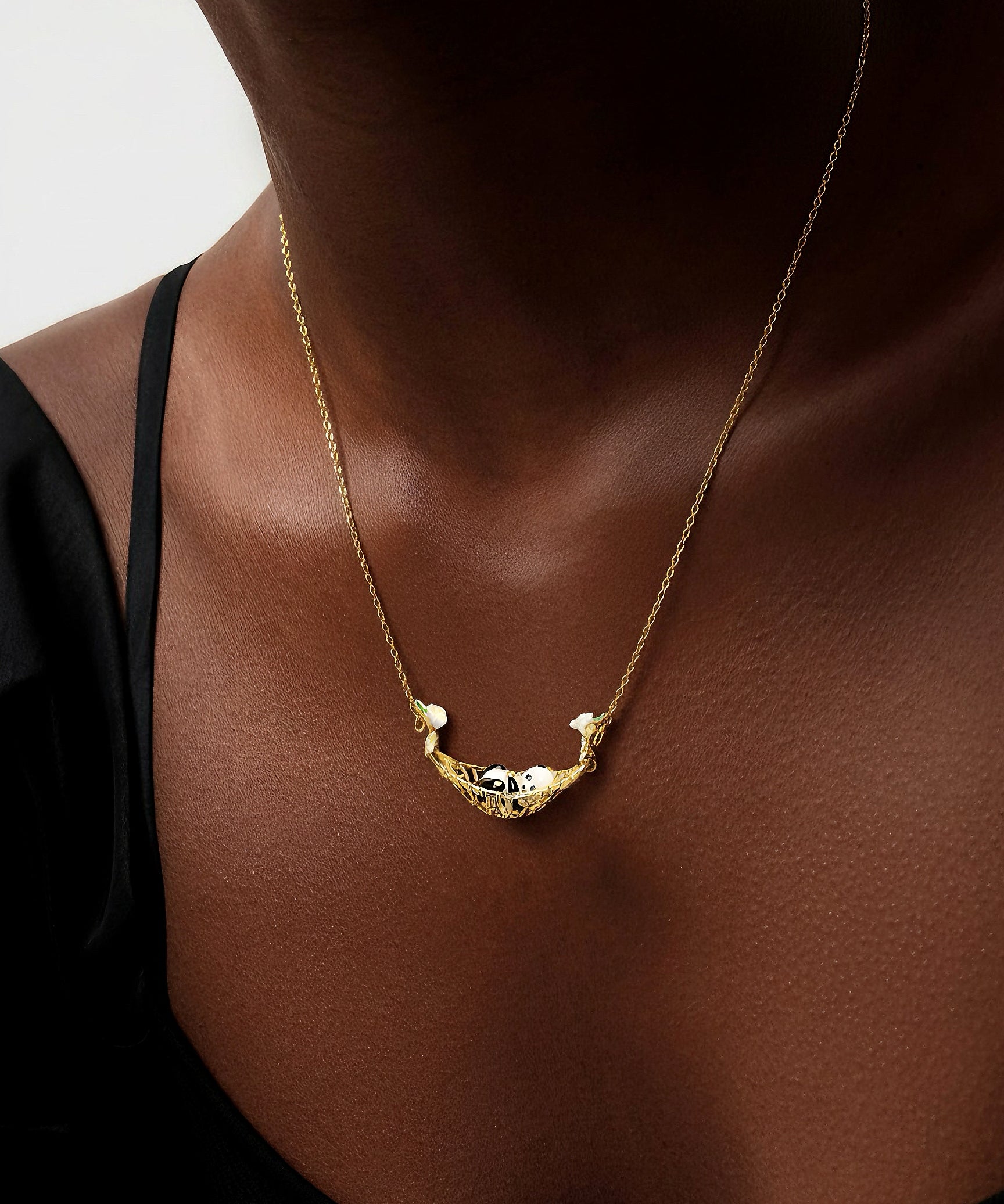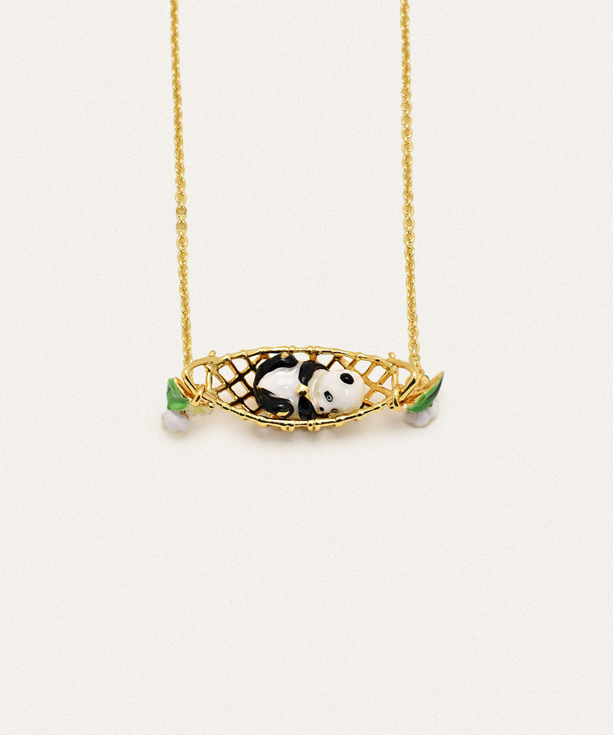 Sleepy Panda in Moonlight Cradle Pendant Necklace