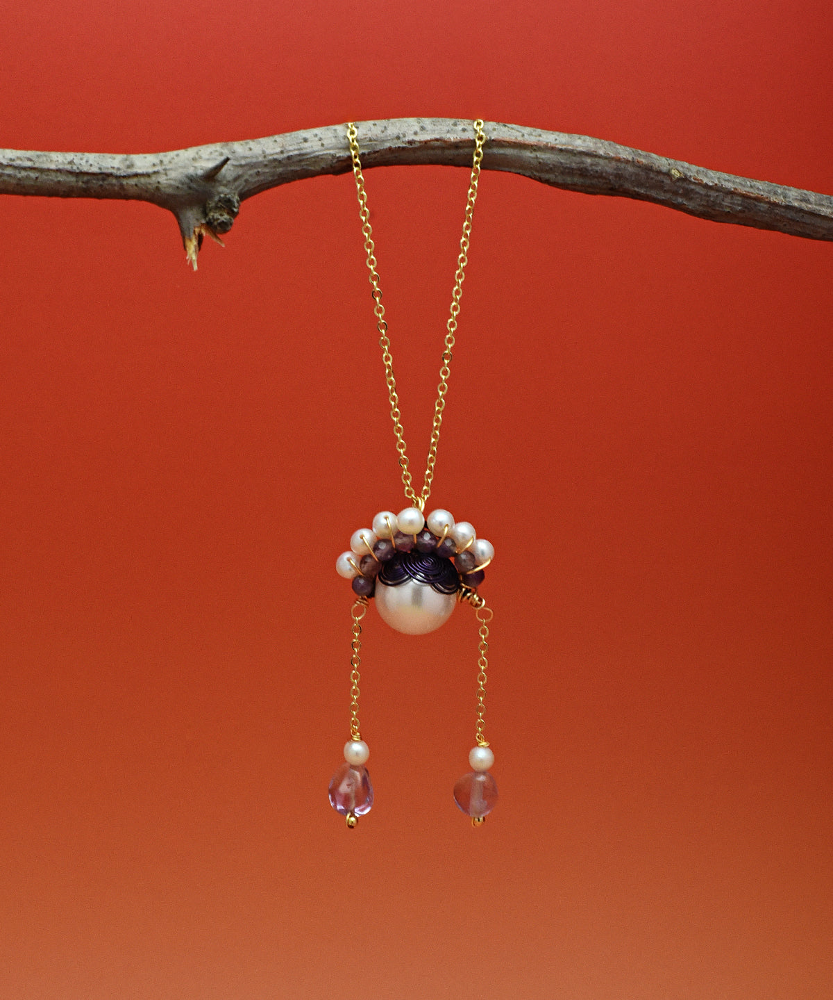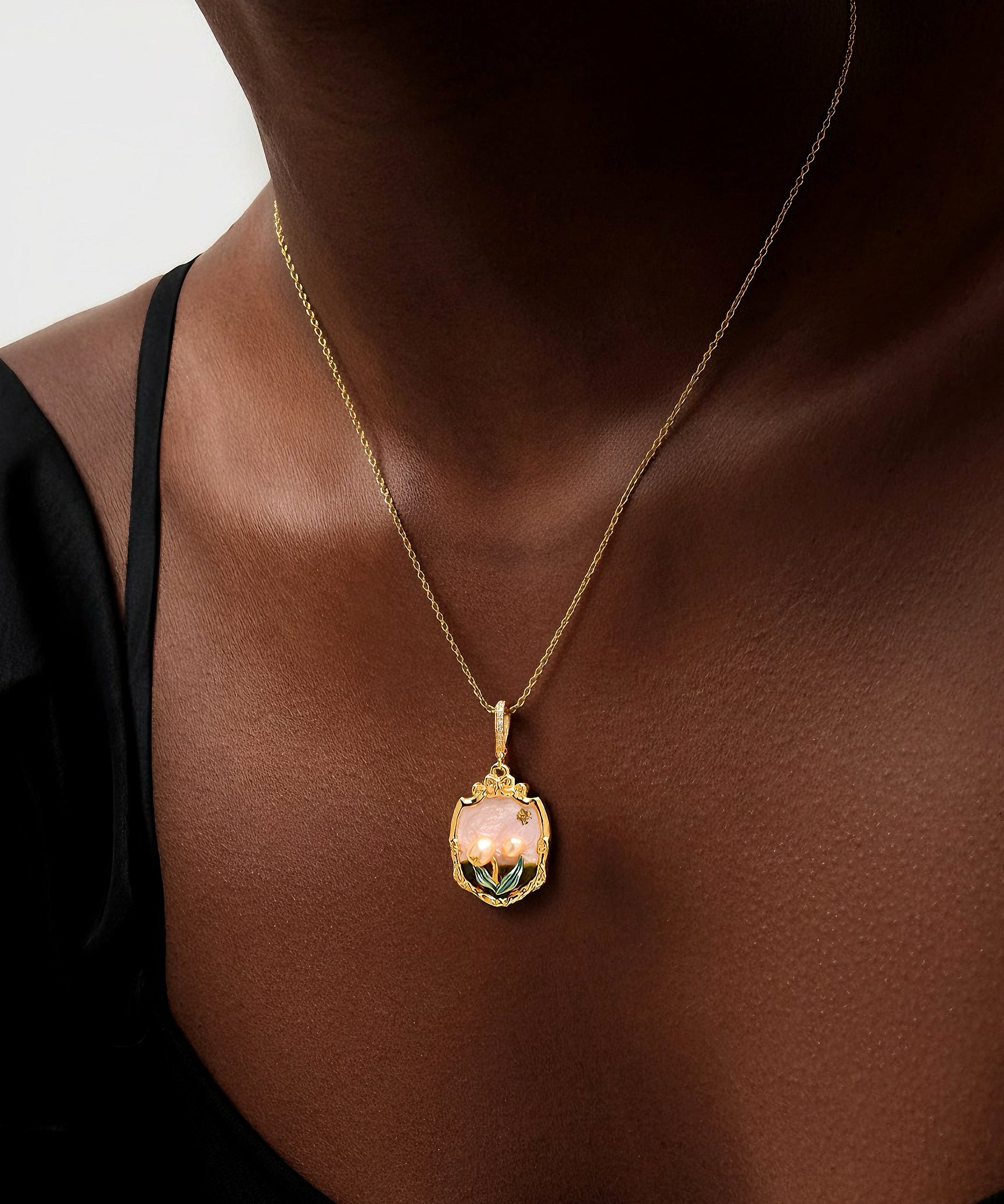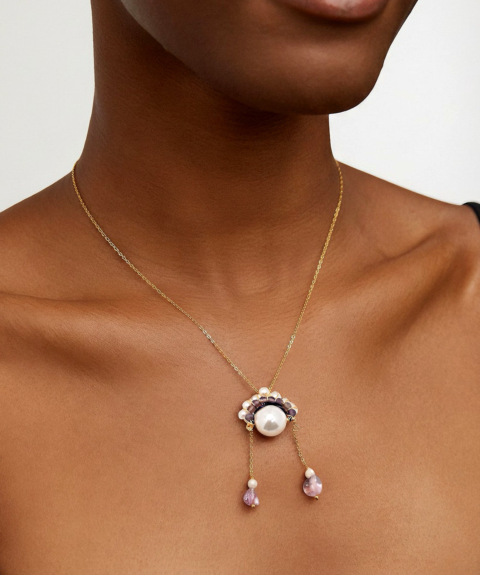 Lavender Quartz and Pearl Floral Pendant Necklace