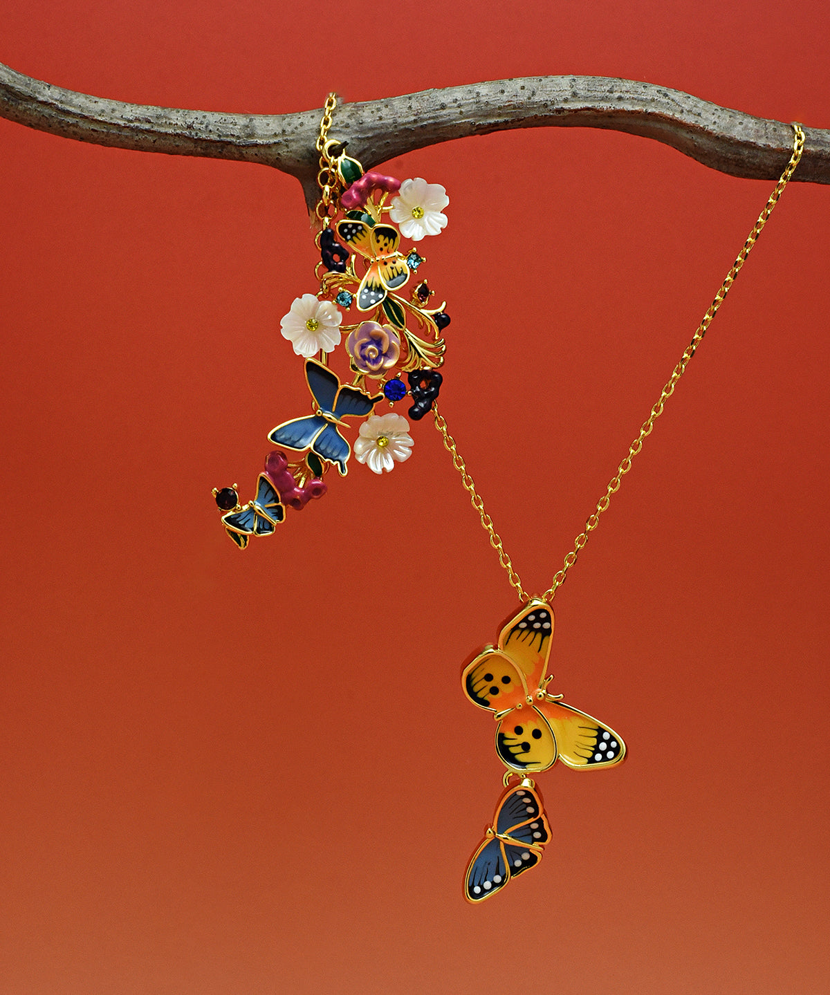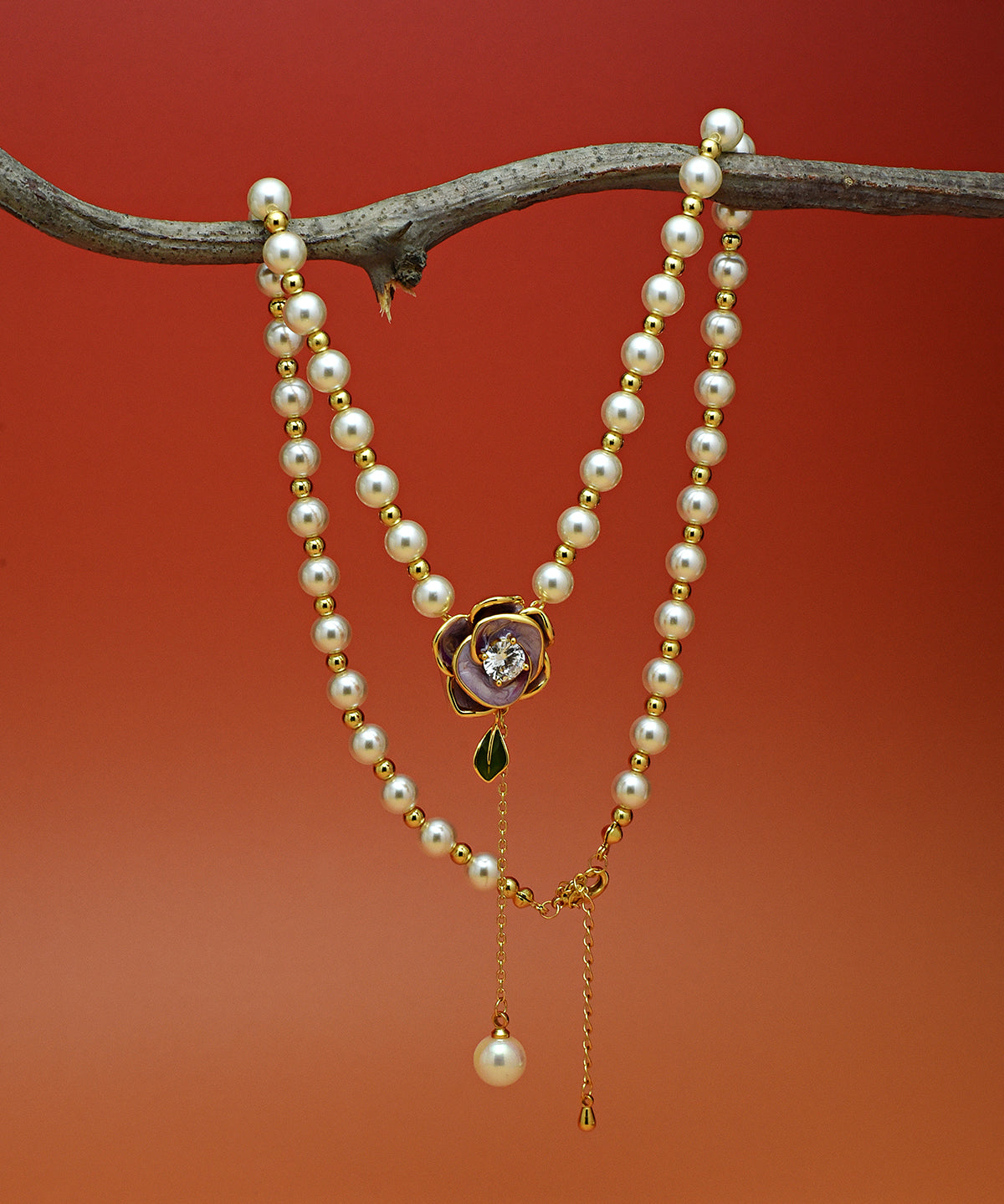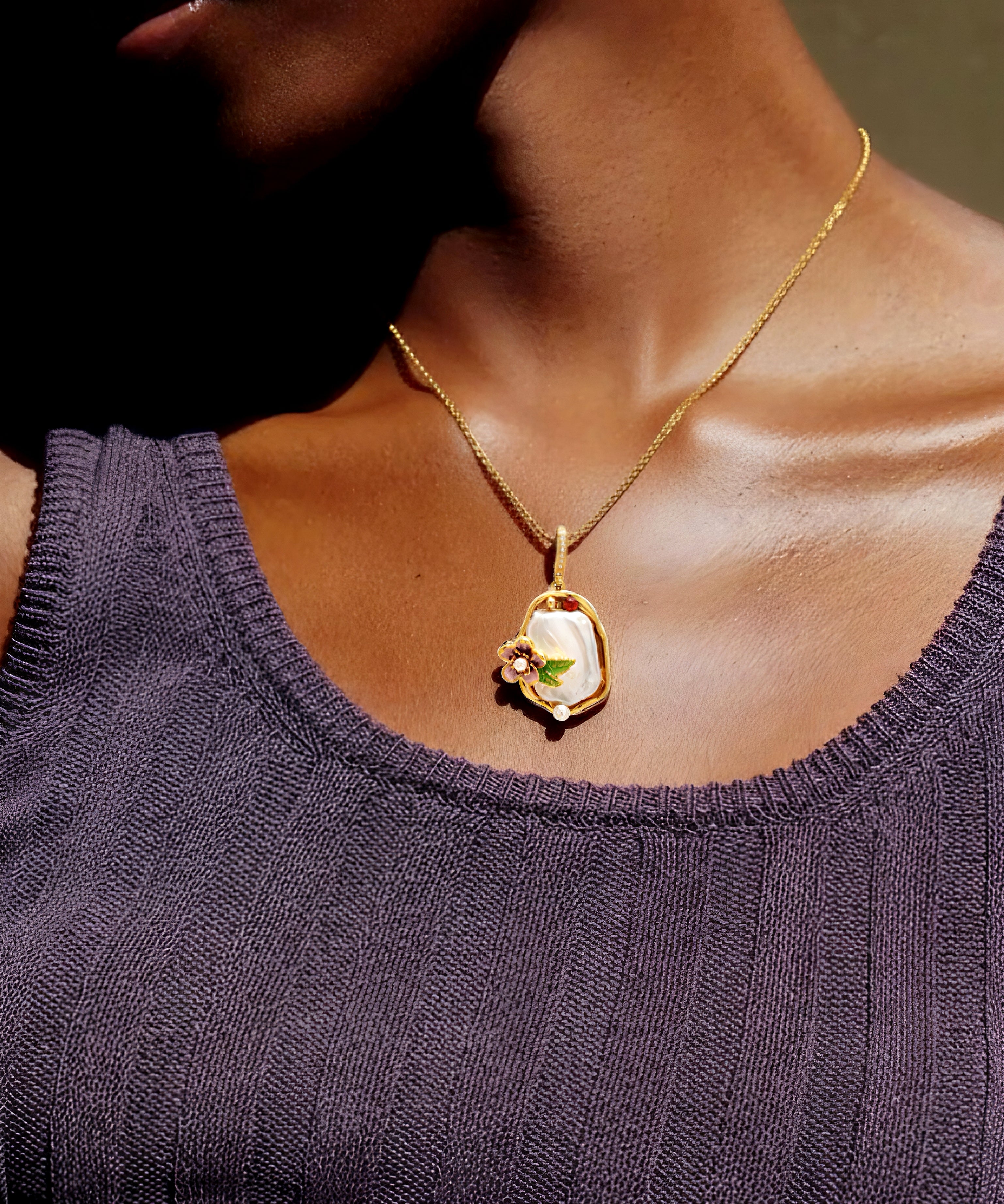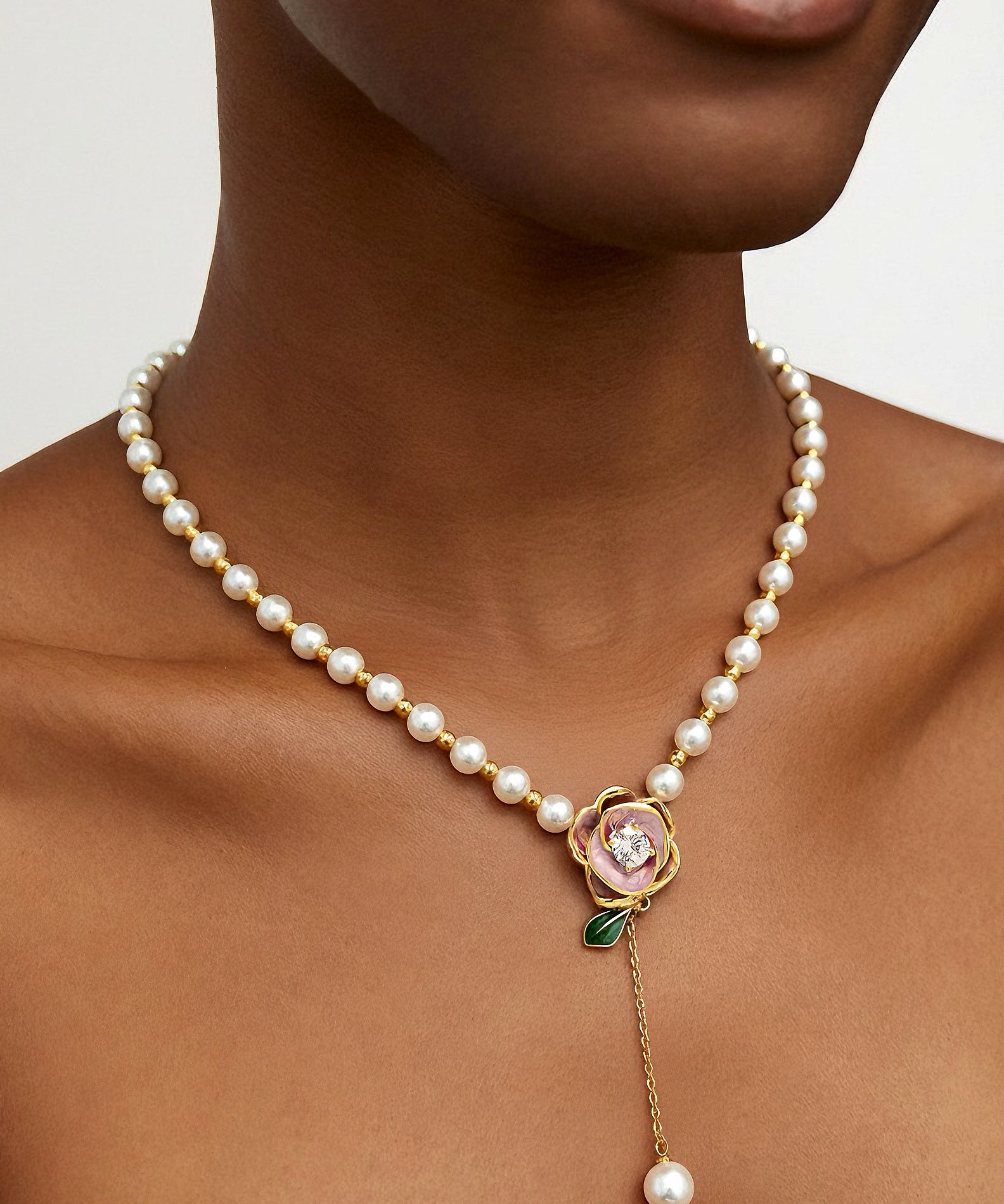 Lavender Quartz and Pearl Floral Pendant Necklace