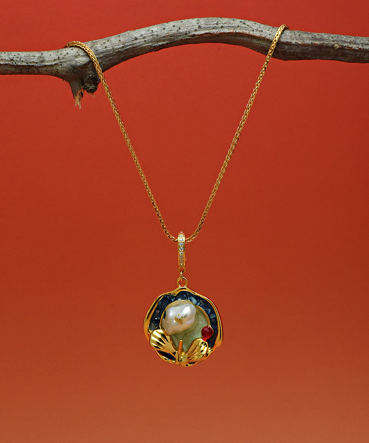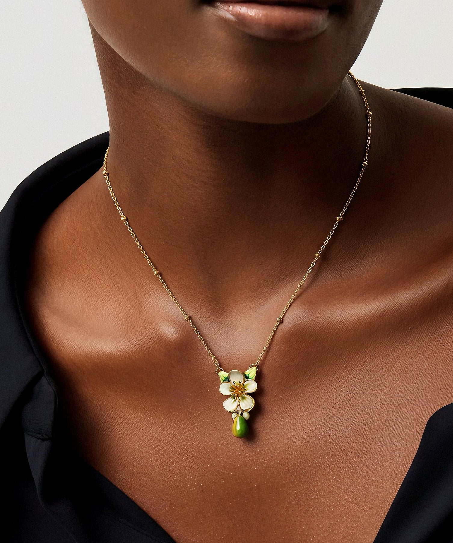 Green Elegance Oil Painting Baroque Pearl Pendant Necklace