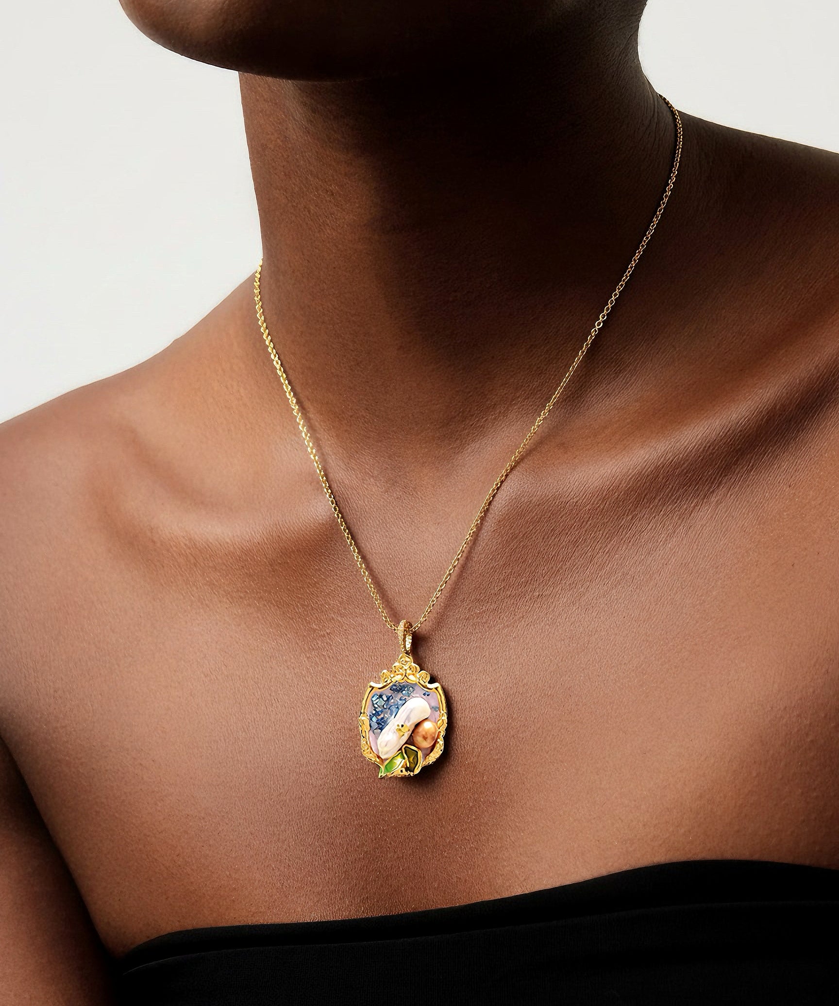 Blue Elegance Oil Painting Baroque Pearl Pendant Necklace