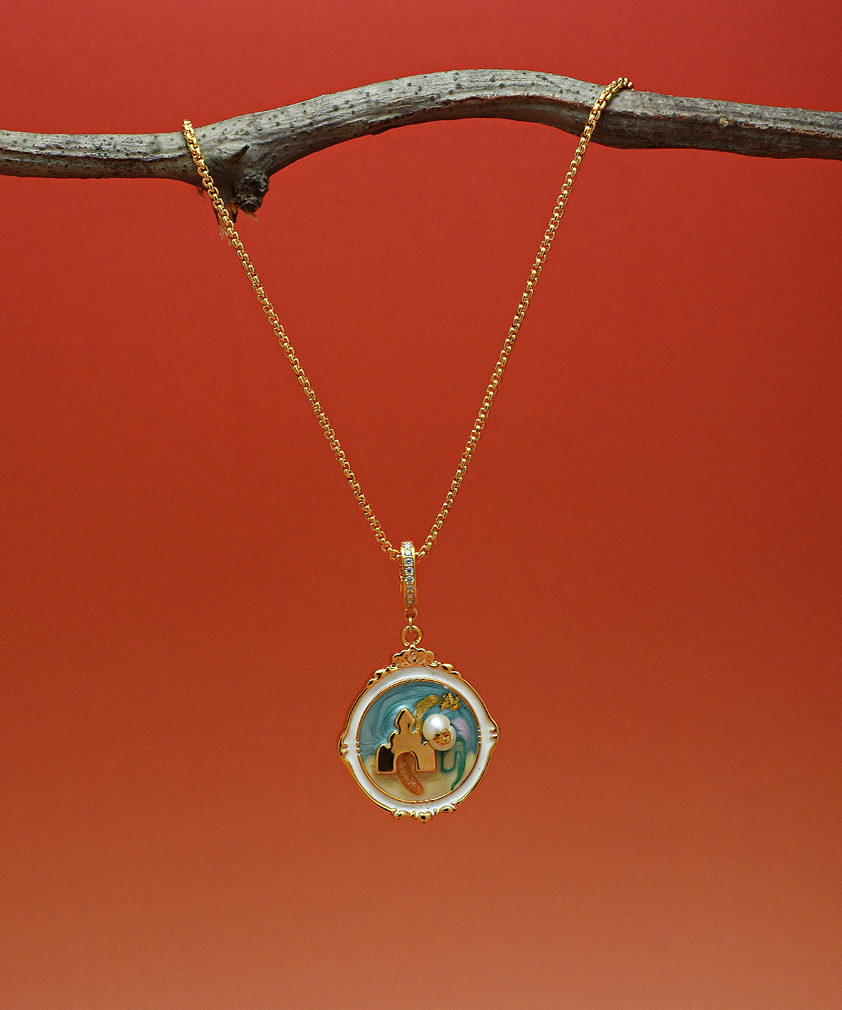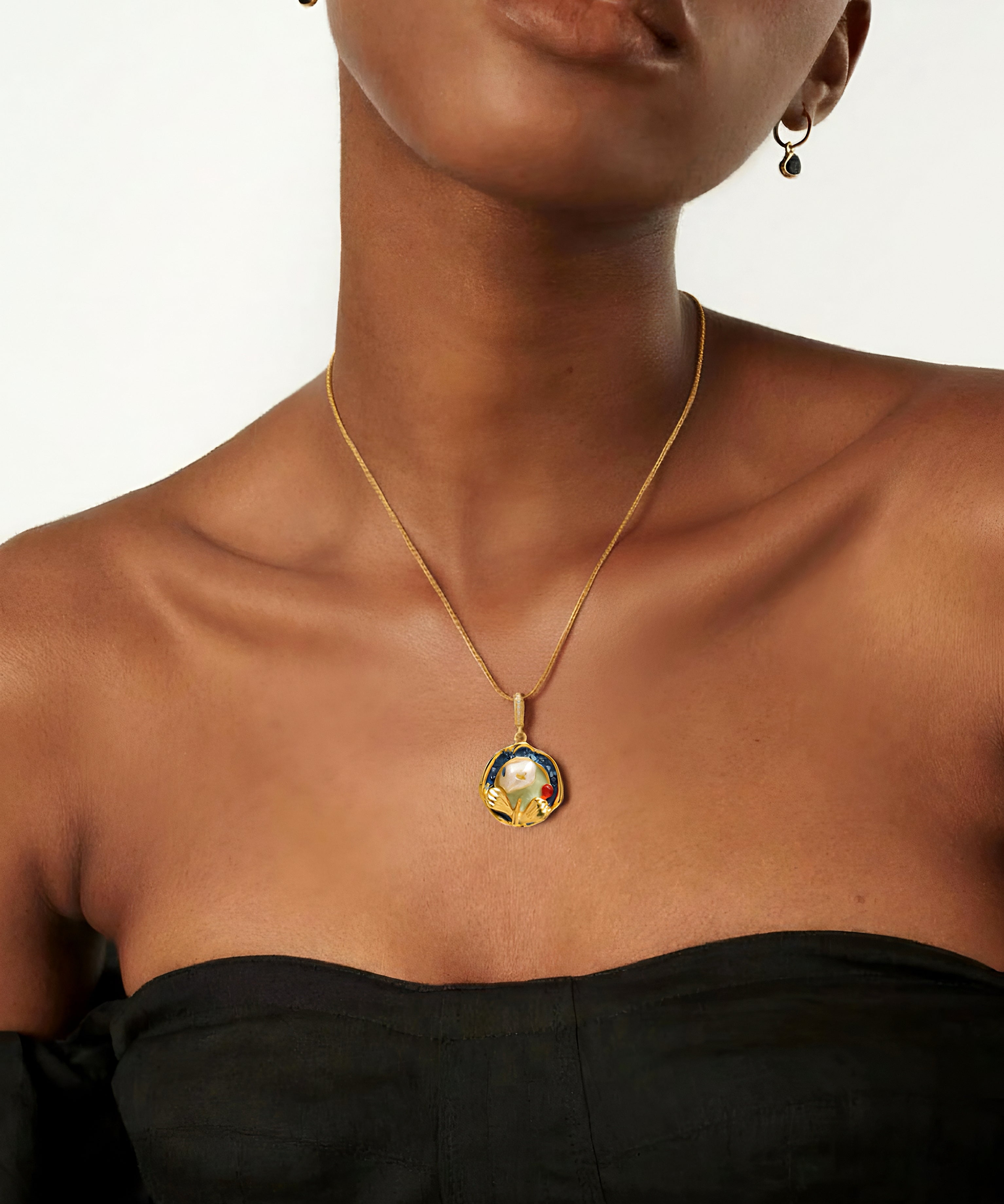 Sleepy Panda in Moonlight Cradle Pendant Necklace
