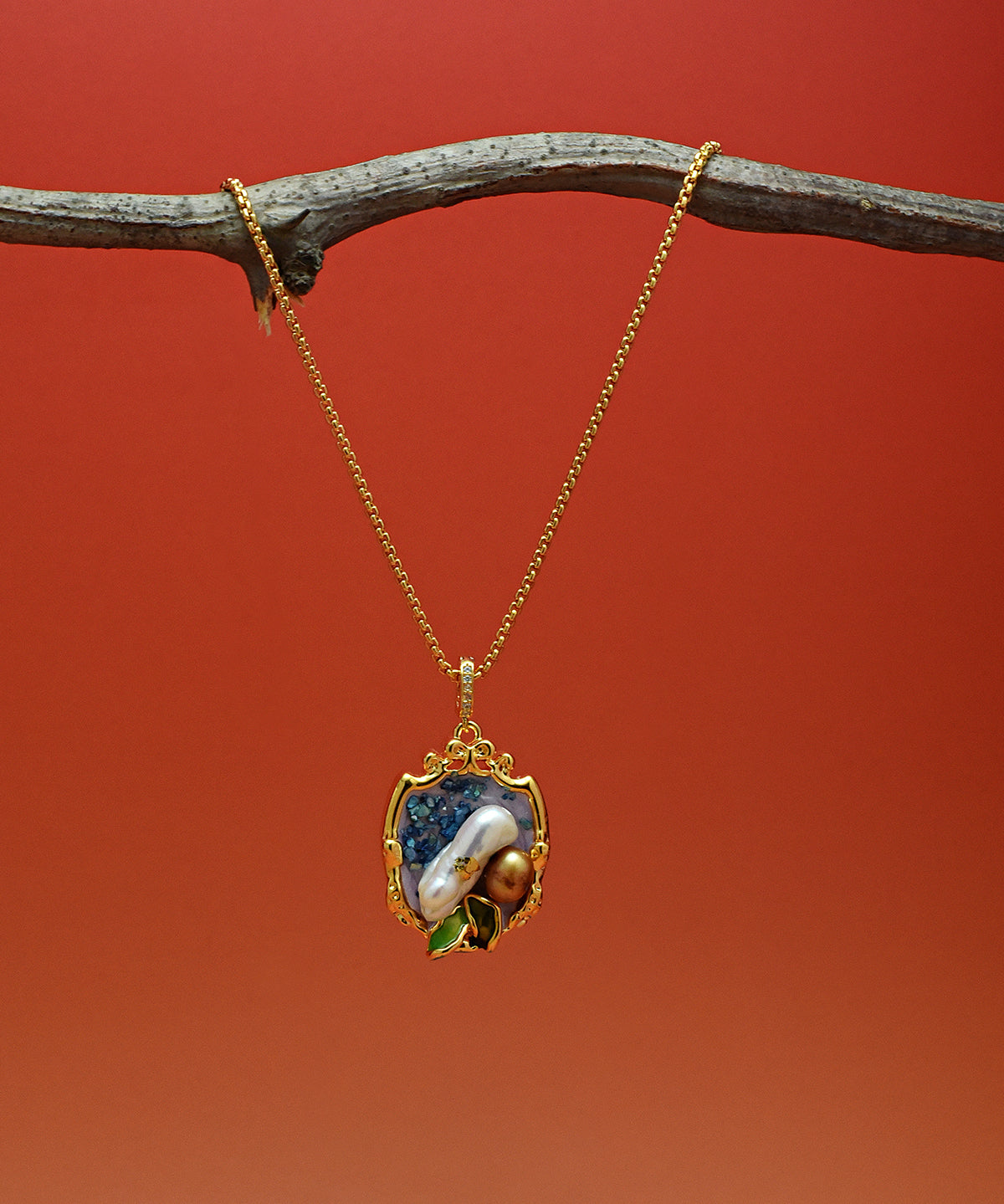Navy Elegance Oil Painting Baroque Pearl Pendant Necklace