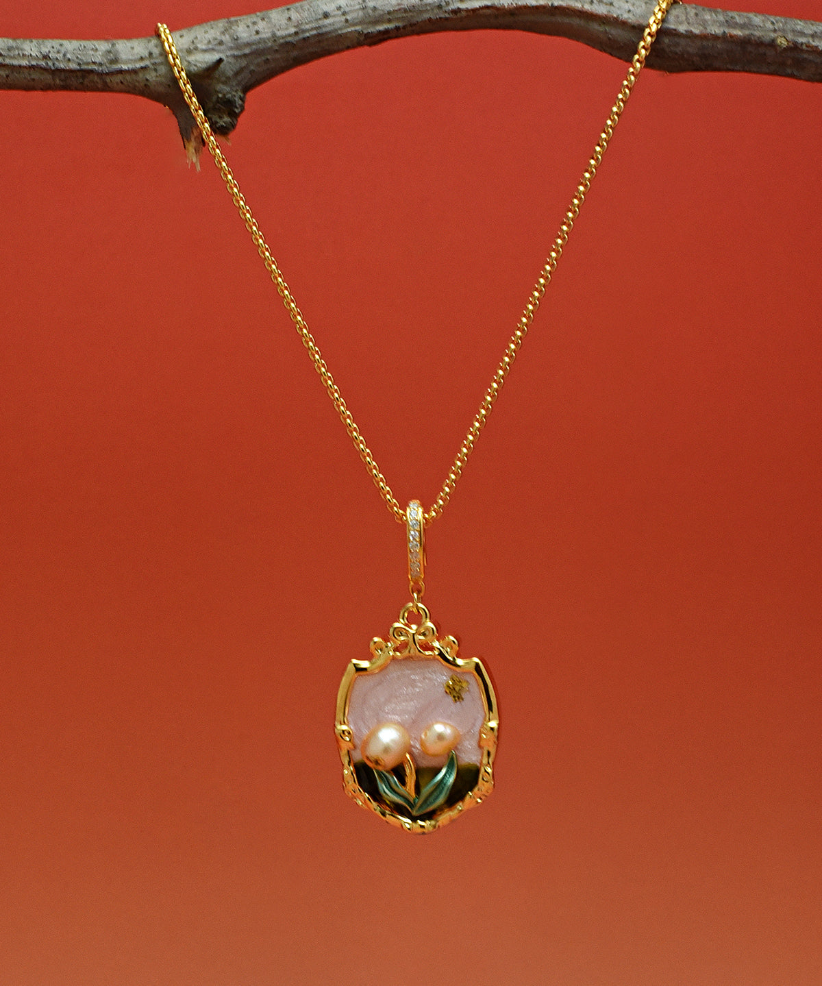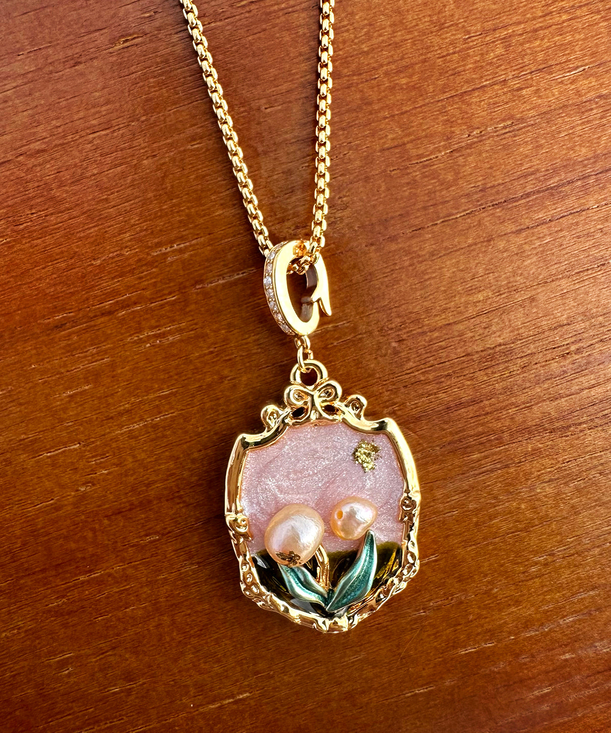 Pink Elegance Oil Painting Baroque Pearl Pendant Necklace