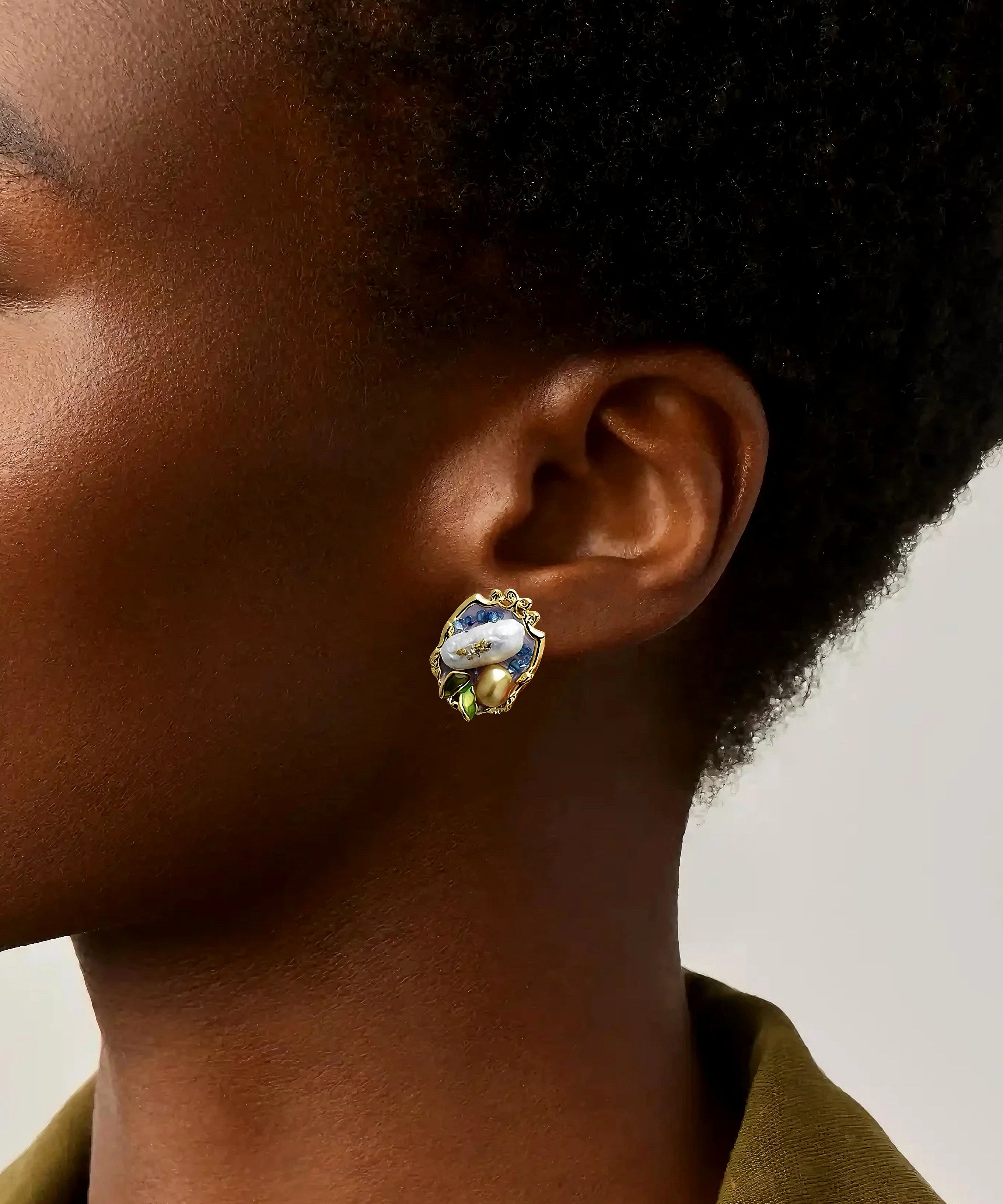 Blue Elegance Oil Painting Baroque Pearl Pendant Necklace