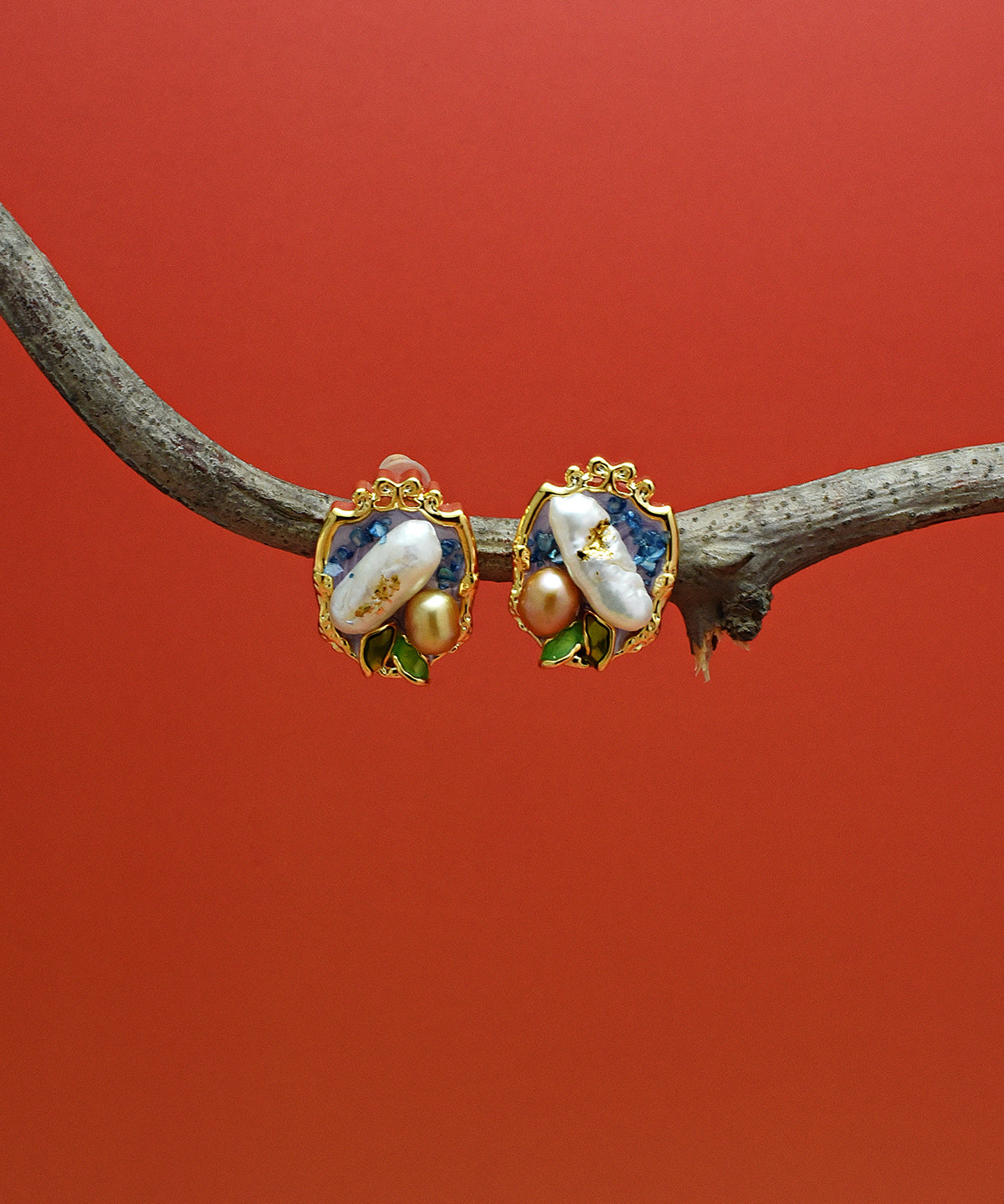 Navy Elegance Oil Painting Baroque Pearl Pendant Necklace