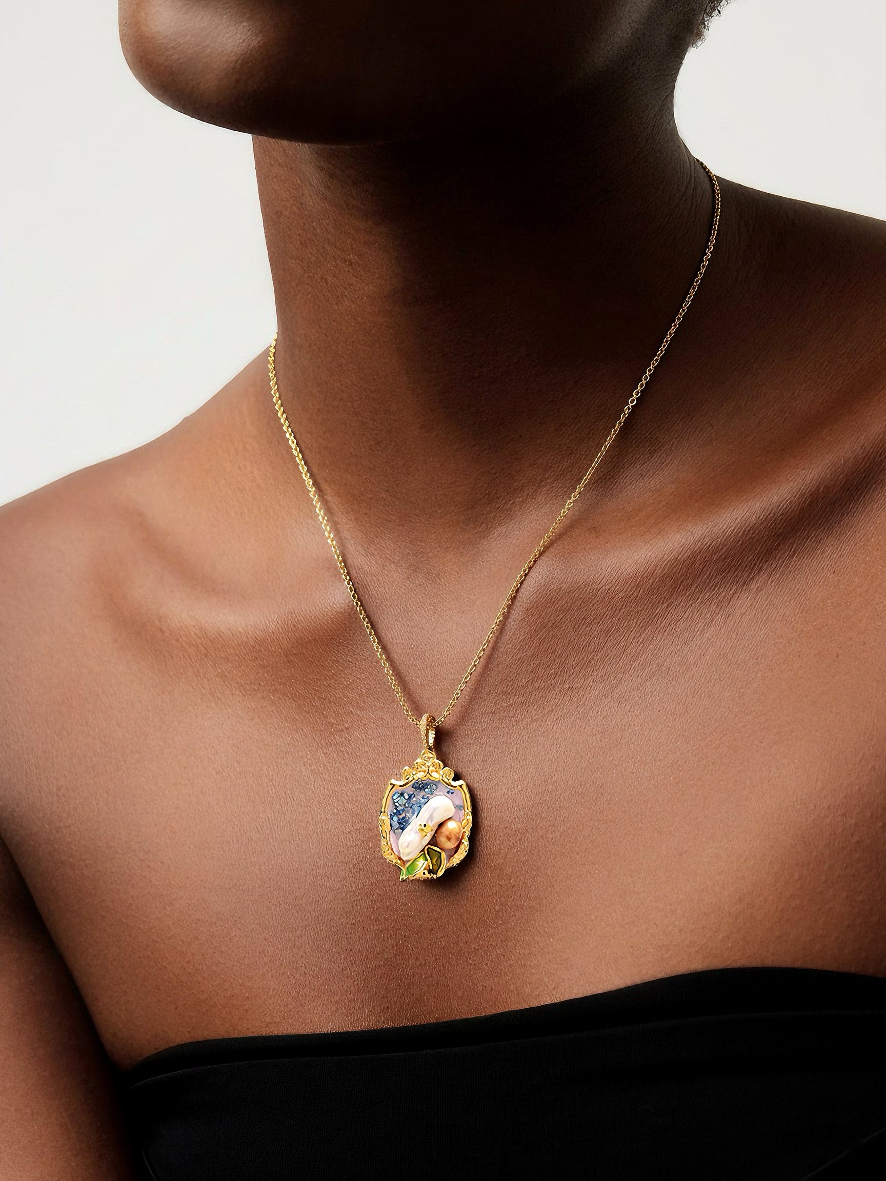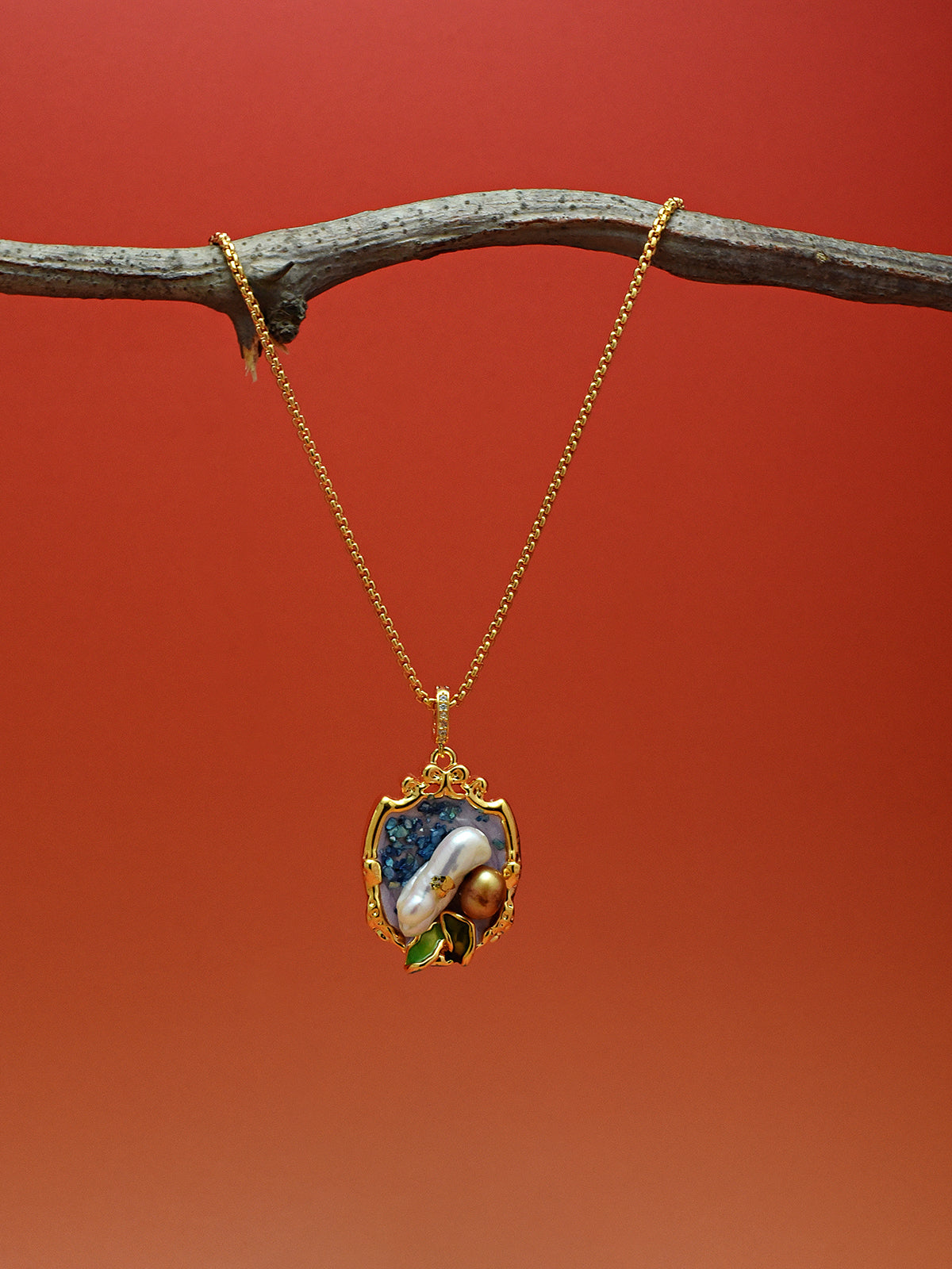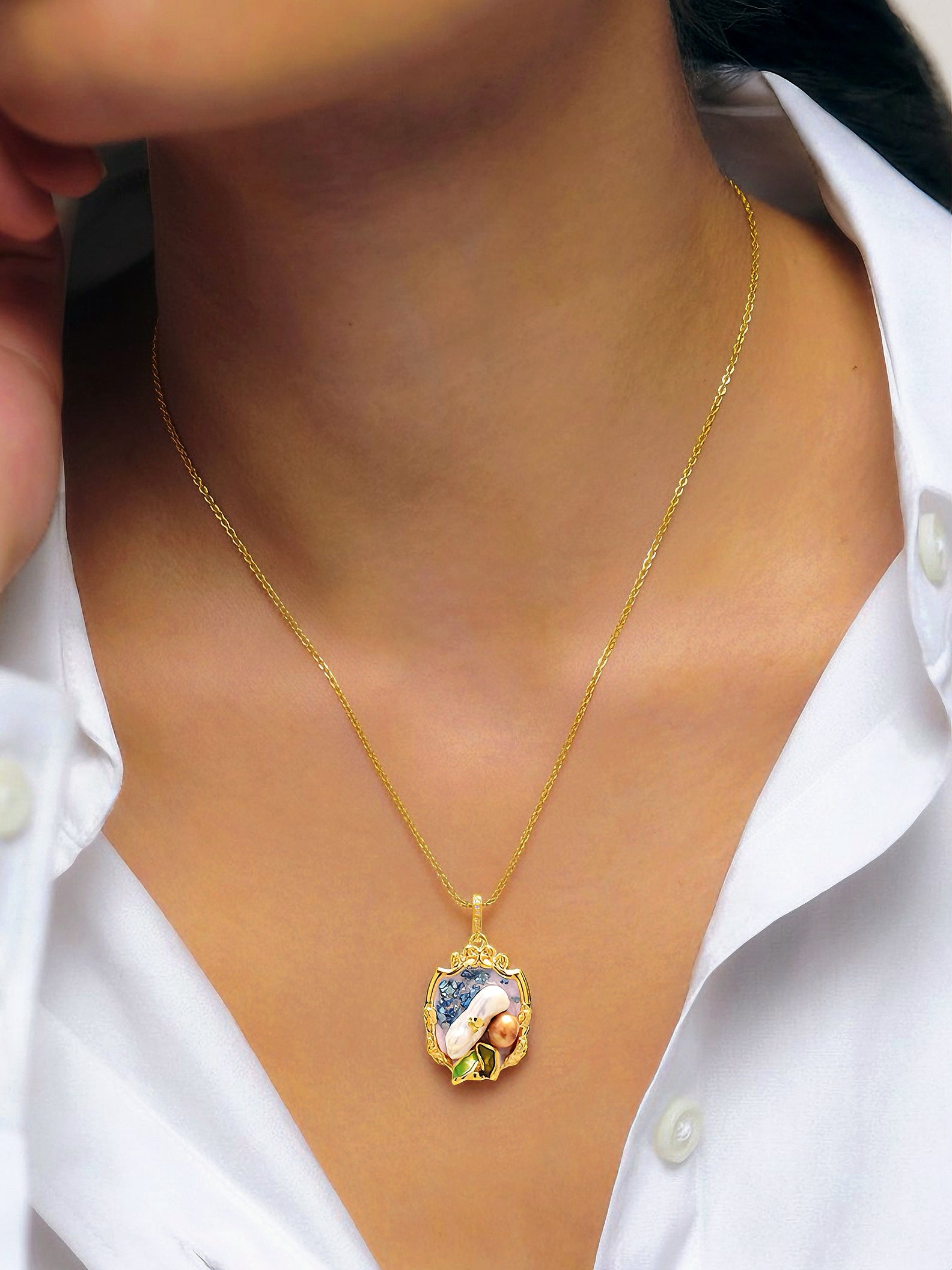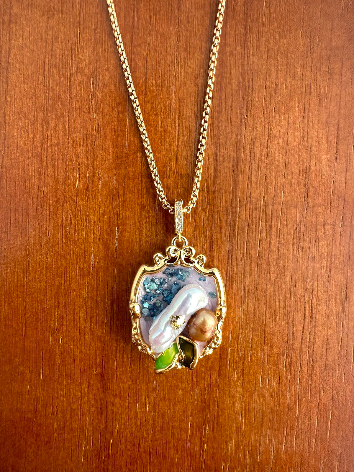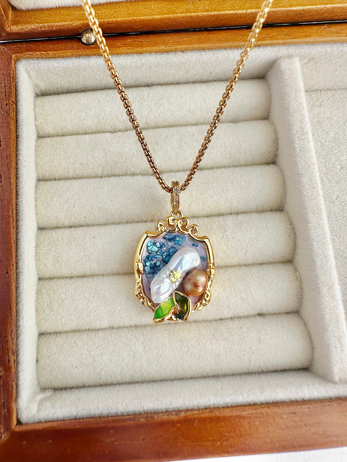 Blue Elegance Oil Painting Baroque Pearl Pendant Necklace