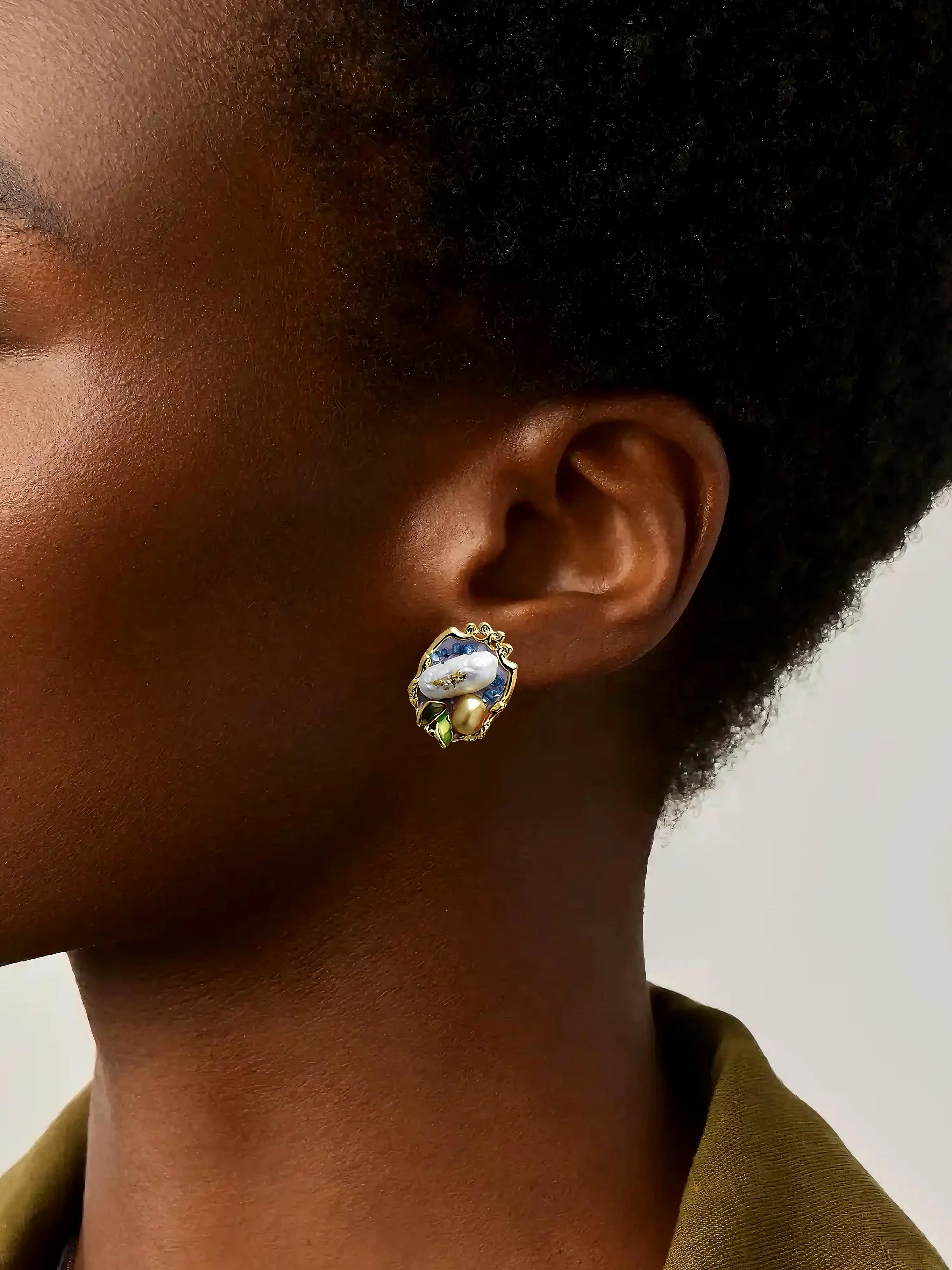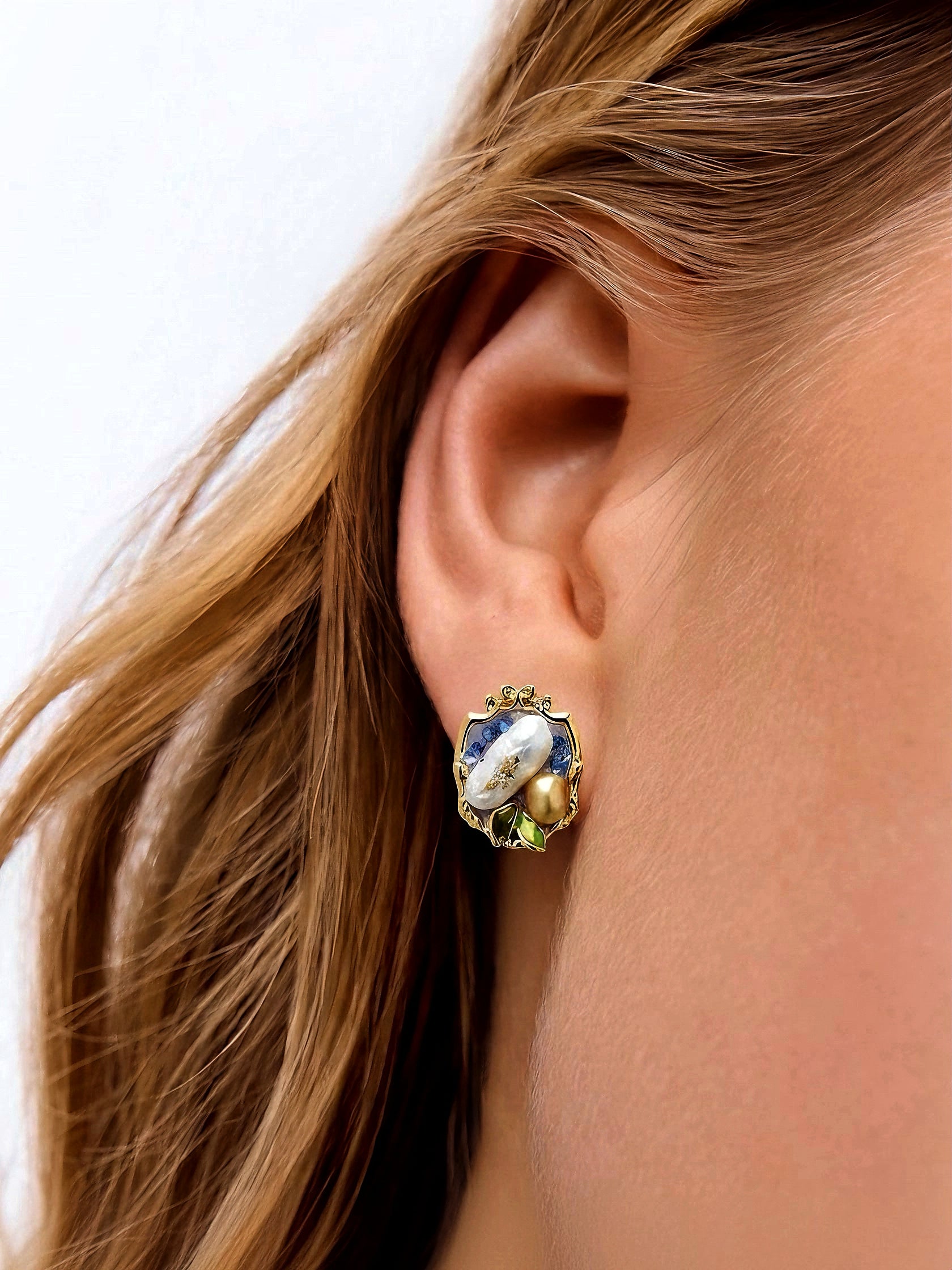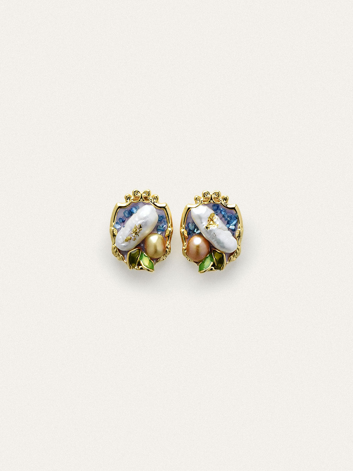 Twin pearls bloom beneath the curve of a white petal — soft, surreal, and endlessly tender.