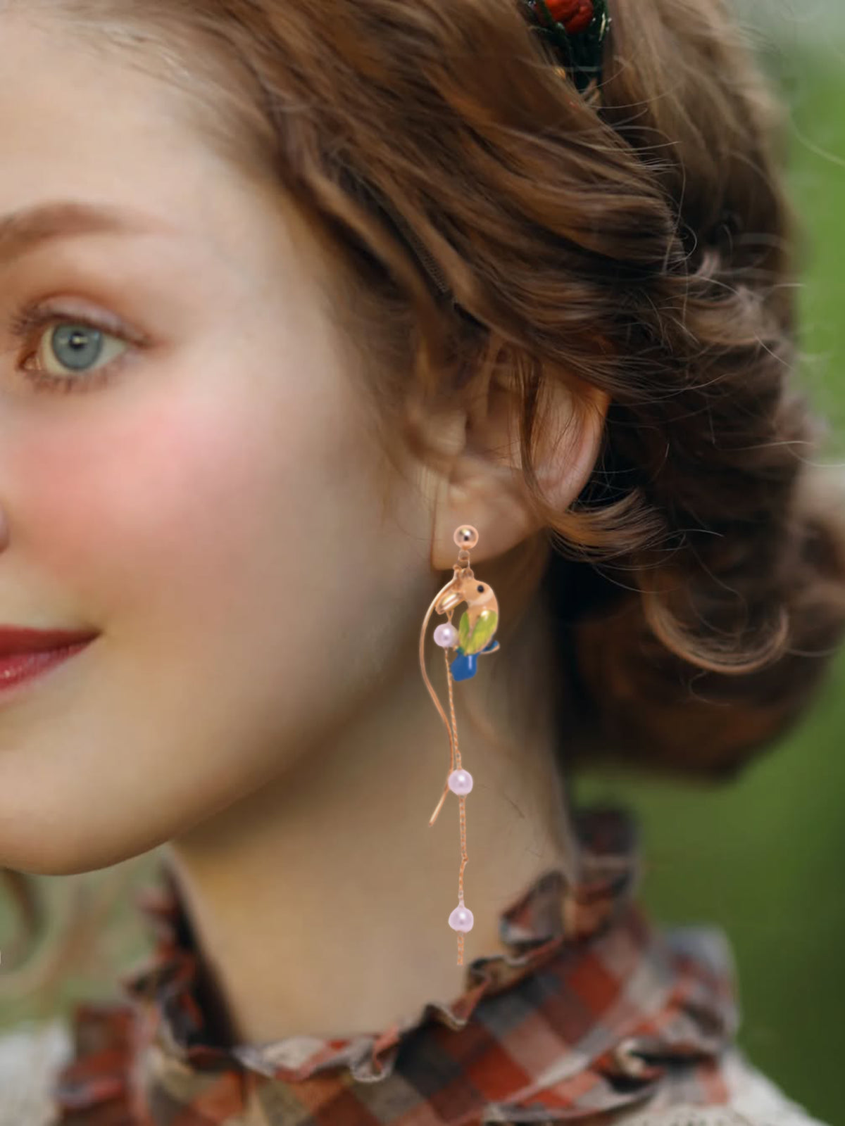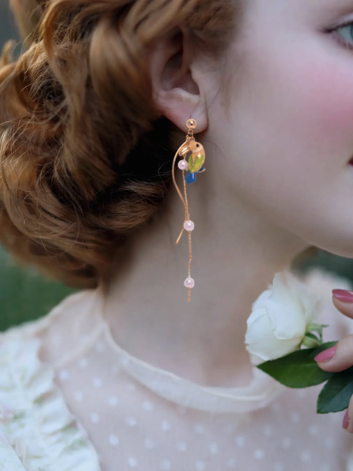 A tiny garden in motion—blossoms open, a gentle bee hovers, and a circle of green holds the promise of new beginnings. Slip these hoops on and feel that quiet confidence rise: you don’t chase the light—you bloom into it.