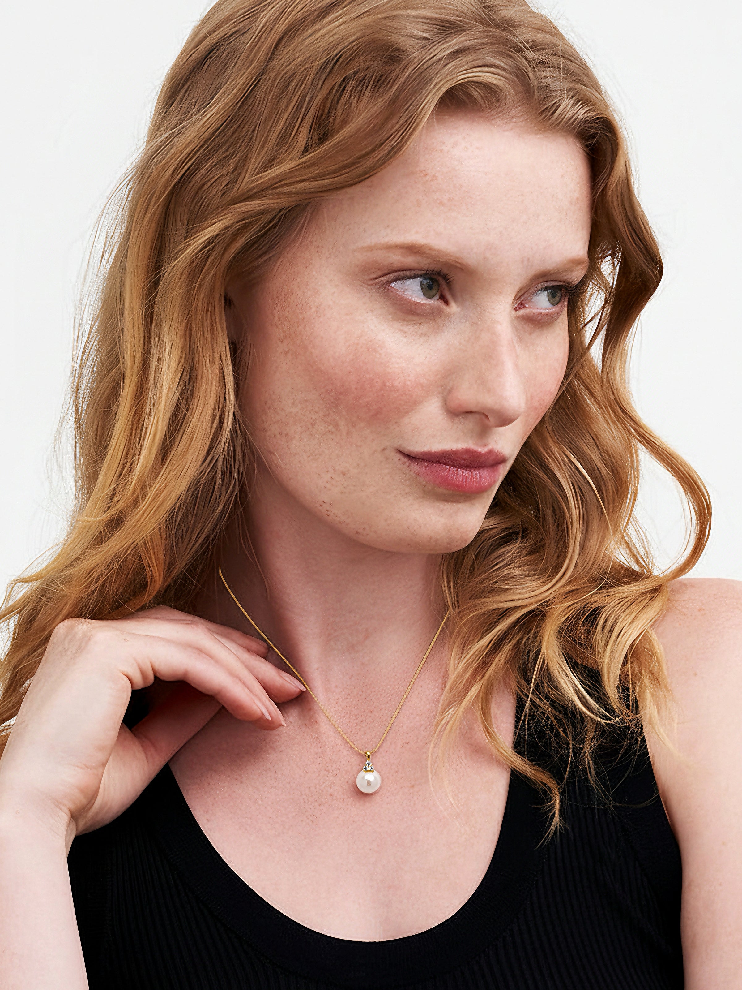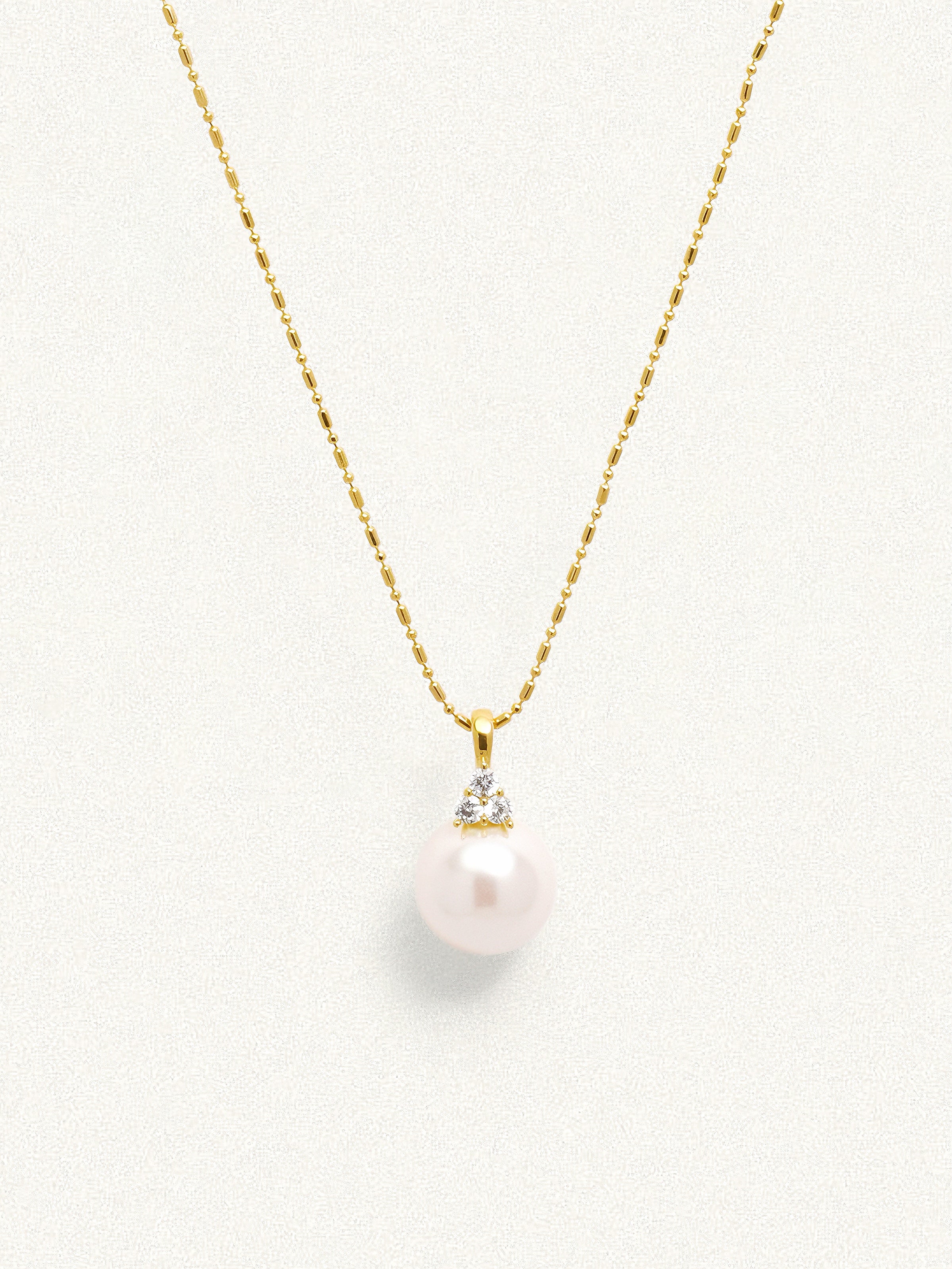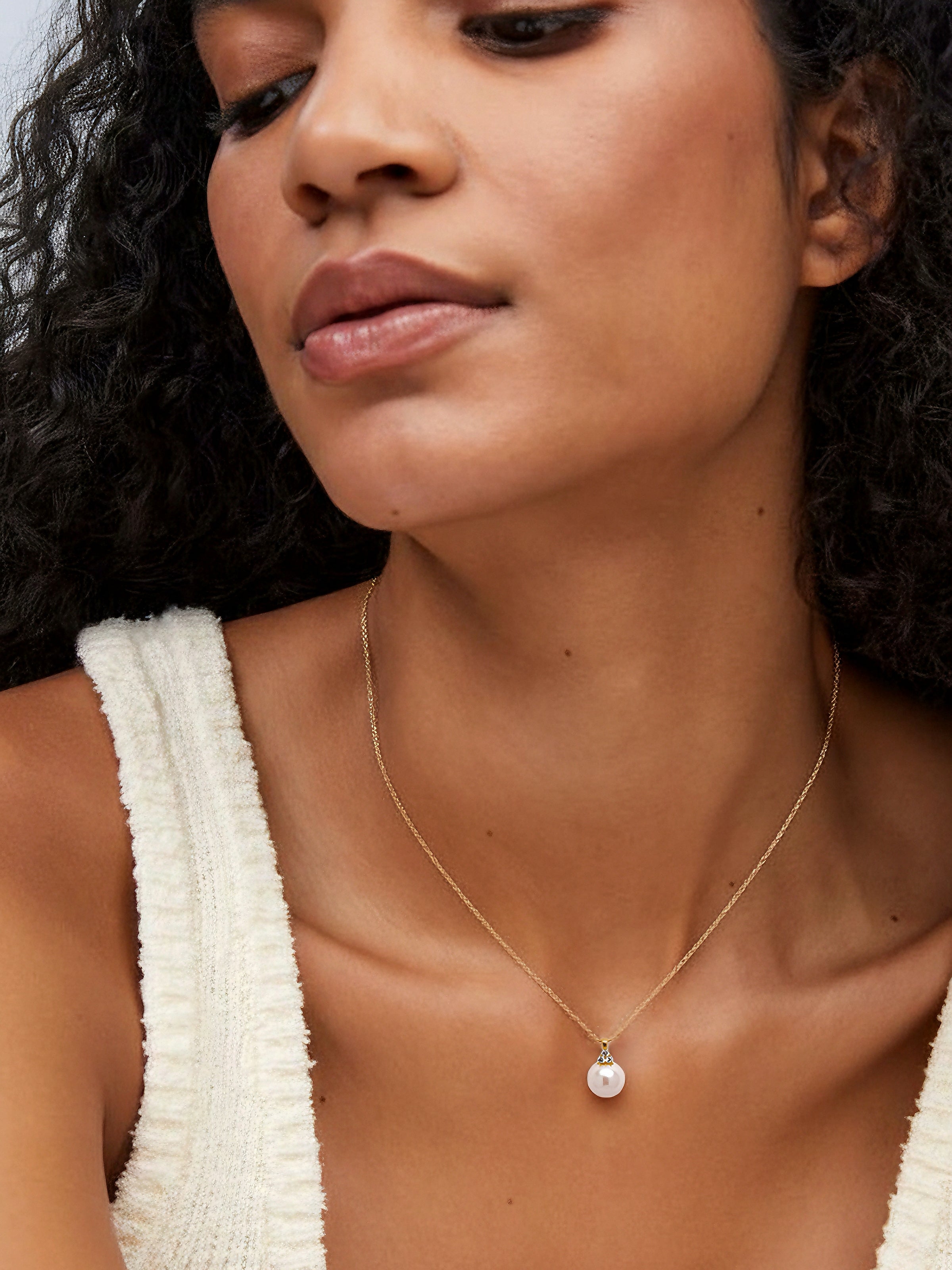 A single drop of calm—one luminous pearl crowned with a spark of light—resting where your pulse whispers. Wear it when you need simple beauty to steady a busy day and soften every look.