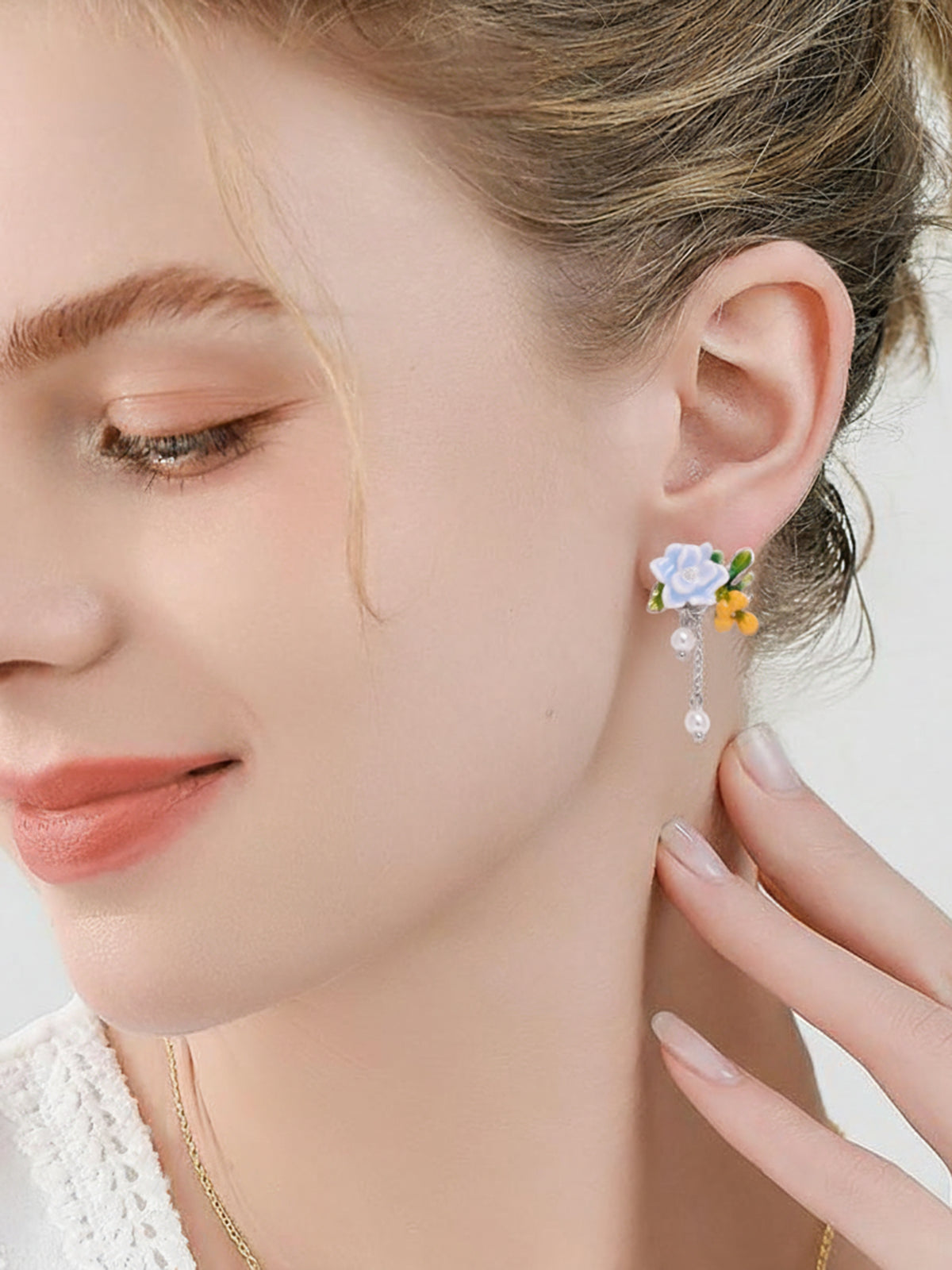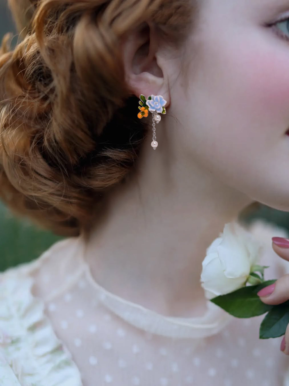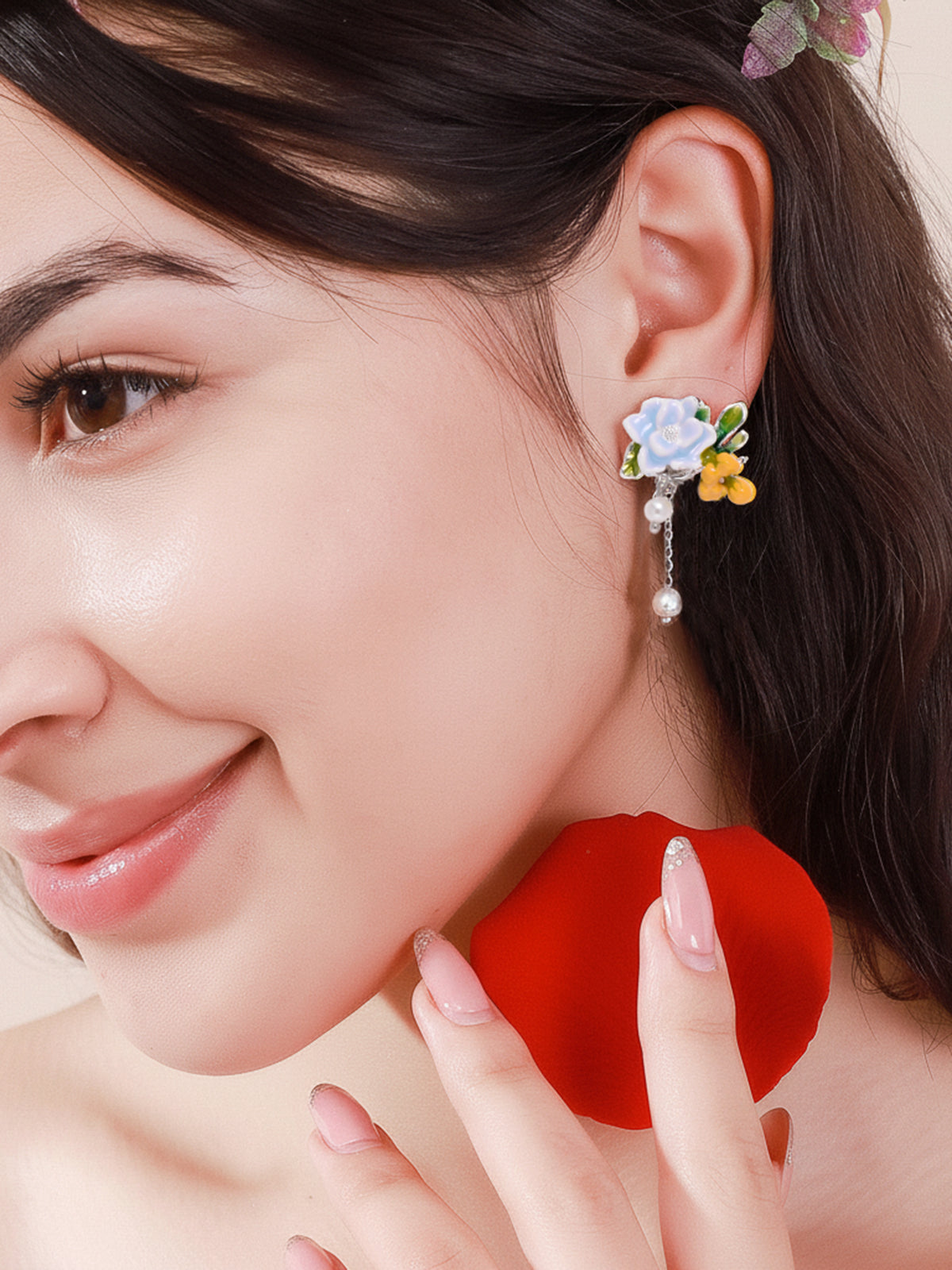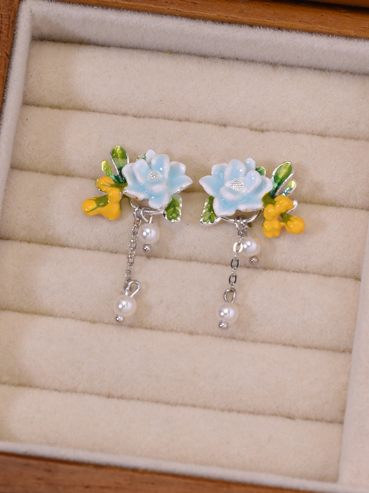 Crafted with hand-painted enamel, silver-tone settings, and petite pearl drops, it keeps calm beauty in motion.